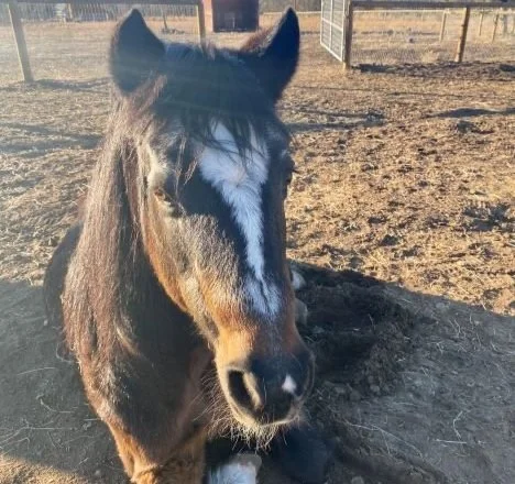 Born around 2011, Zee arrived at HeartSpace in a truly special way—on the very same day as his daughters, Sunny and Maya. When we got the call that this little pony needed a new home, knowing he was their father, how could we say no?