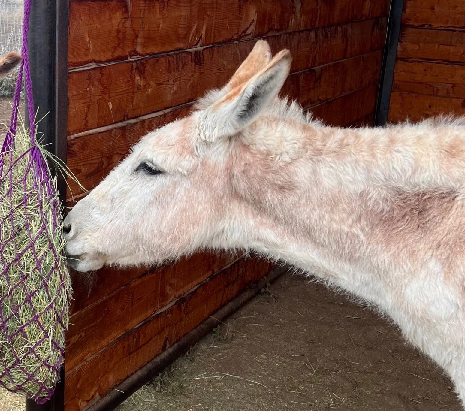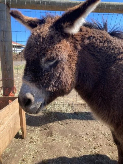 Since that day, Pedro has been the star of the paddock. Loved by all, he has formed strong bonds, offering comfort and calm—especially to Revel. He’s never far from his herd (or his humans) and is always ready with a bray for hay, a treat, or a little extra attention.